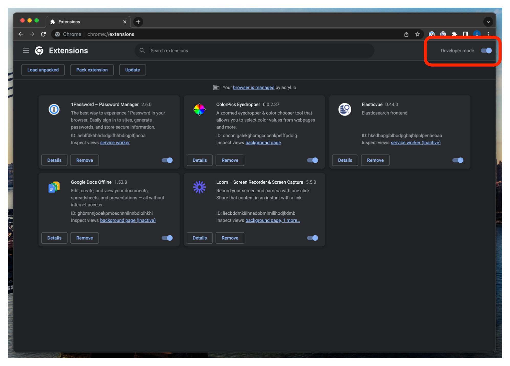 2. Enable developer mode by clicking the toggle on the top right of the page