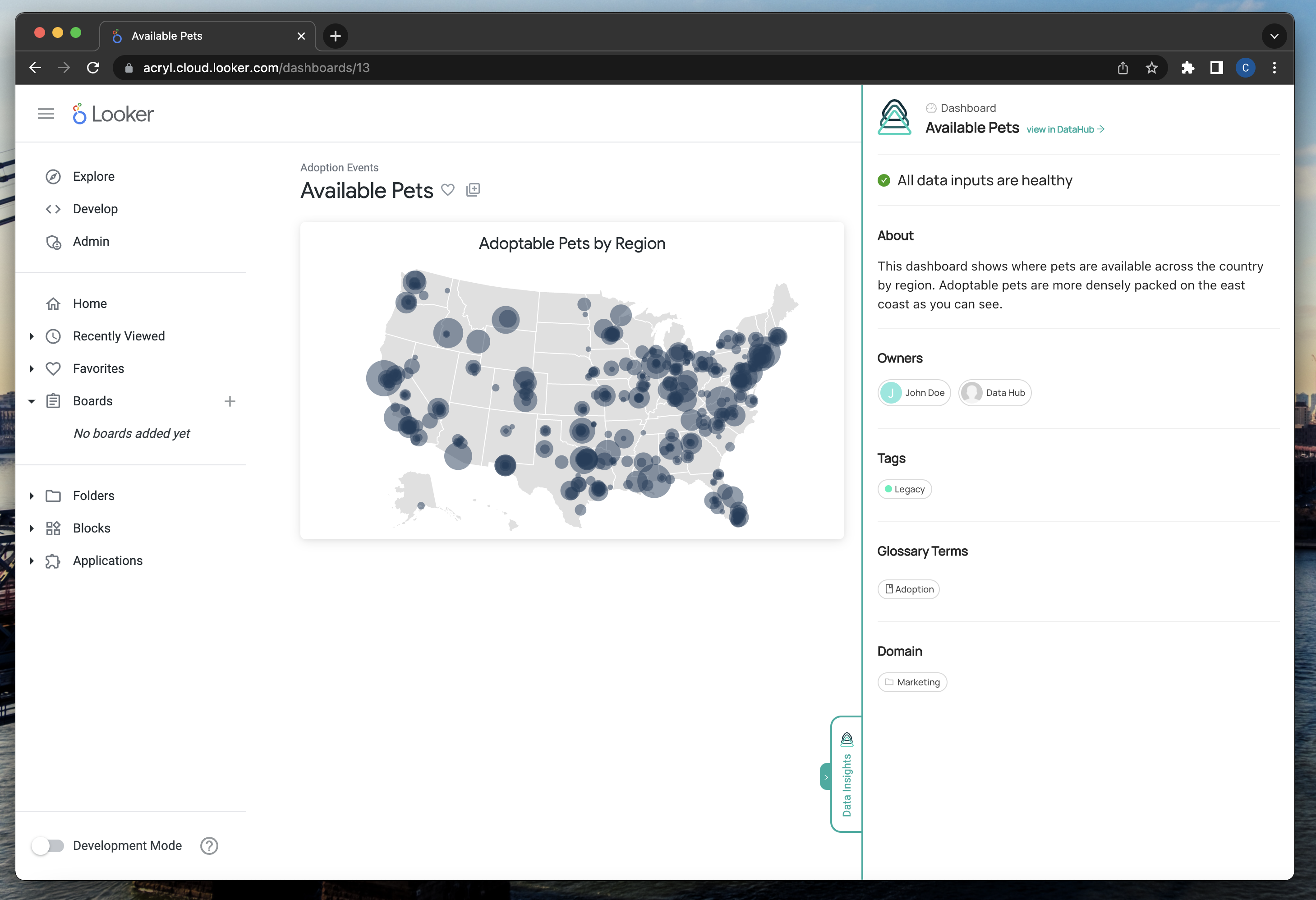 3. Navigate to a page where DataHub can provide insights on your data assets (Dashboards and Explores).